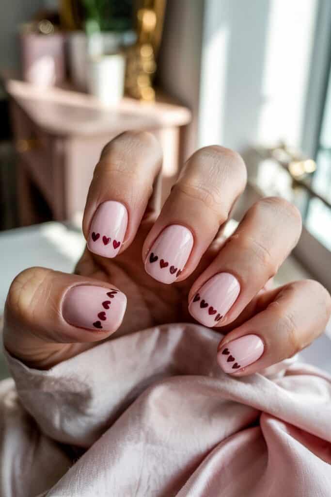 Add tiny brown or burgundy hearts over a pink base for a sweet touch. It’s romantic and seasonal without being too girly.