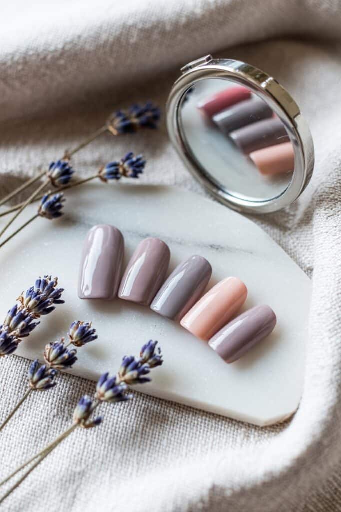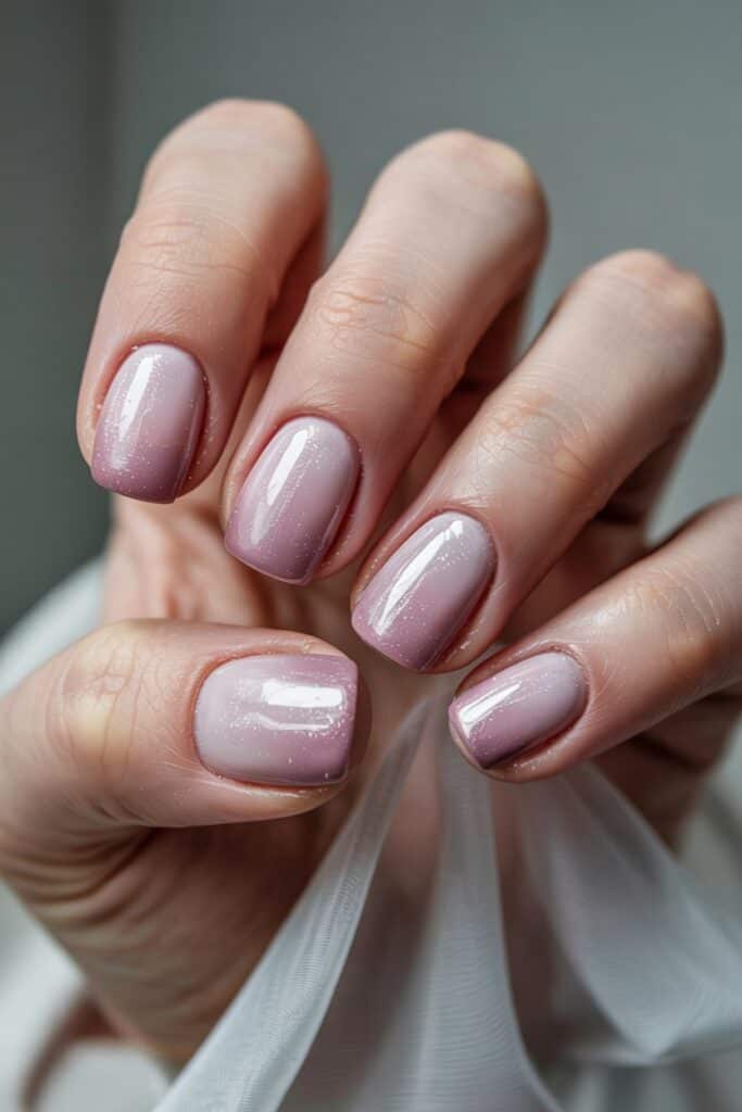 Blend light pink into a deeper mauve for a soft gradient. The ombré effect elongates nails and looks delicate.